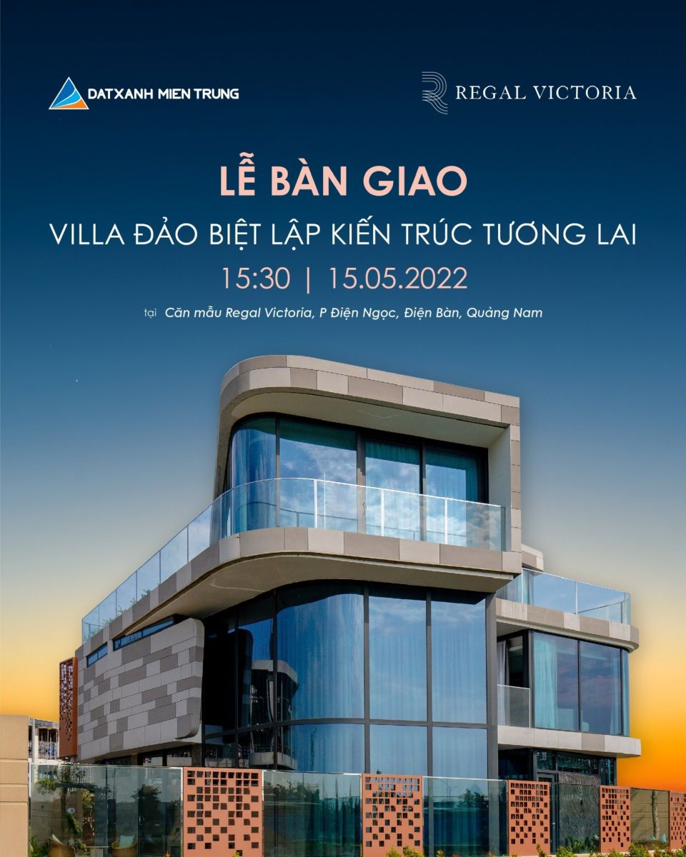 Chiều ngày 15/5, Công ty Cổ Phần Đất Xanh Miền Trung đã tổ chức thành công "Lễ bàn giao Villa đảo biệt lập kiến trúc tương lai Regal Victoria" tại căn mẫu dự án. Bàn giao nhà chỉ sau 6 tháng khởi công mà vẫn đảm bảo chất lượng công trình đạt chuẩn quốc tế, đồng thời tiến hành sang tên sổ hồng cho khách hàng ngay trong tháng 6/2022 là điều mà không nhiều doanh nghiệp ở thời điểm hiện tại làm được như Đất Xanh Miền Trung.